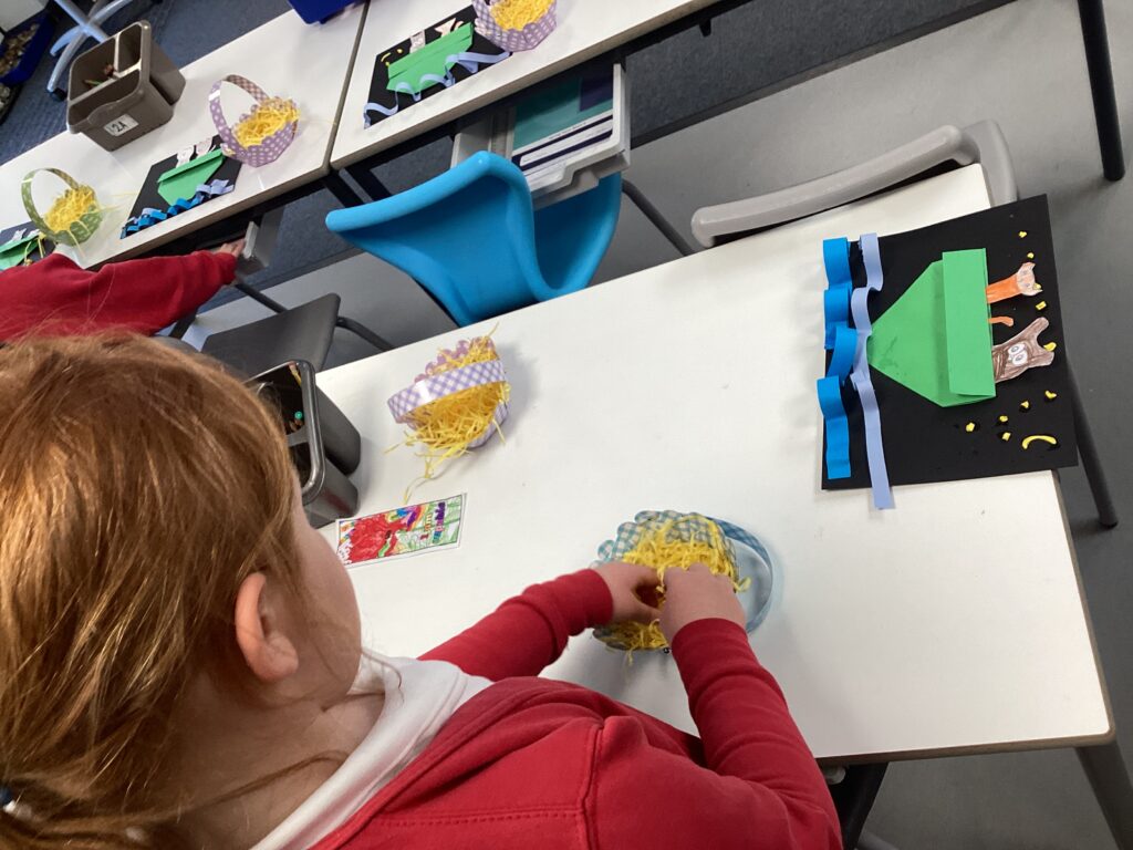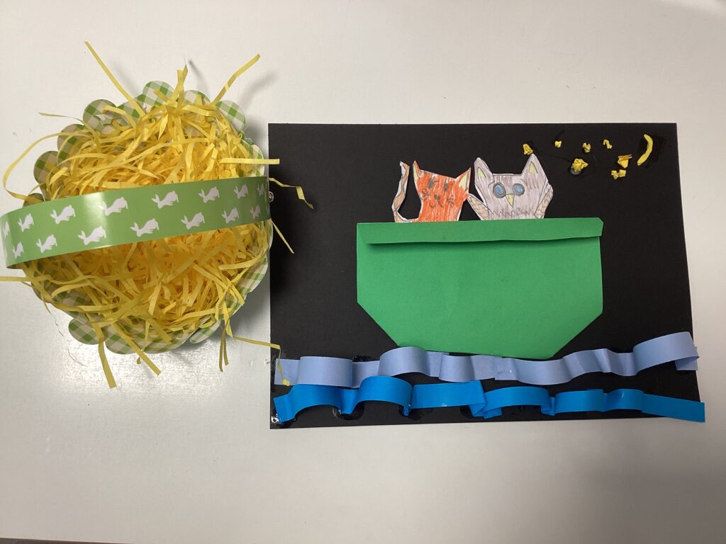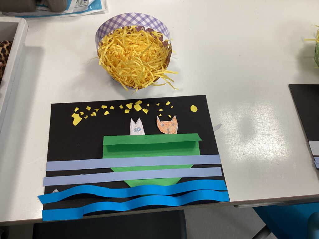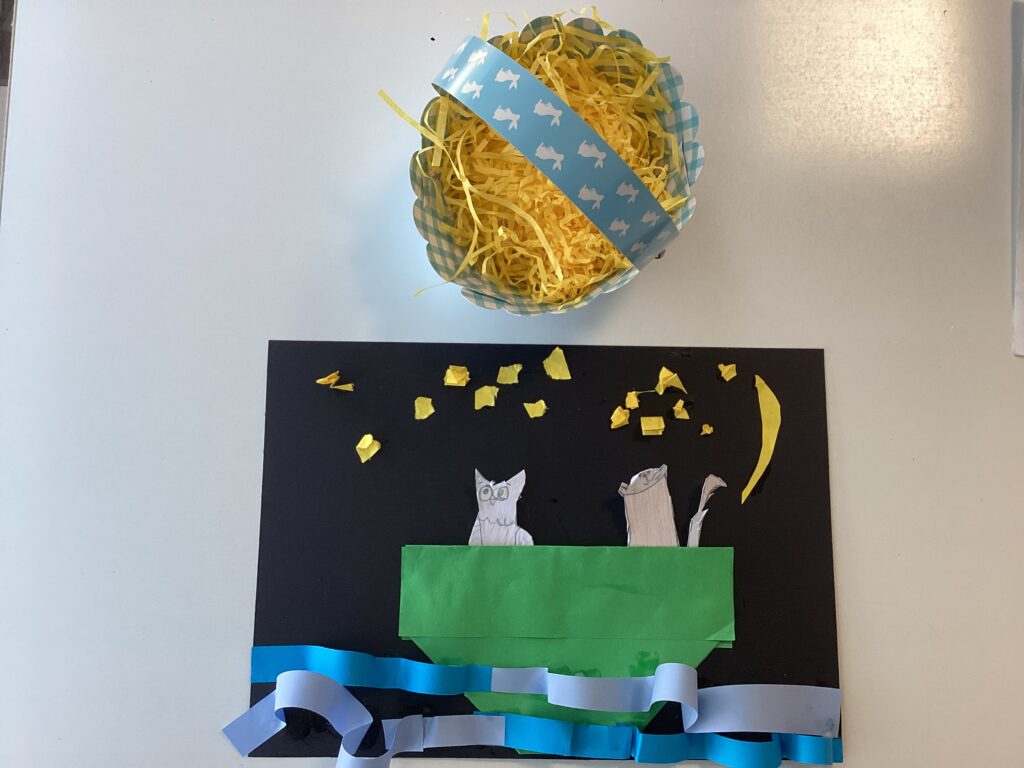 This week was a busy one with children excited about the Easter break. They completed their art work of an Owl and a Pussycat and constructed an Easter basket. They also attended an Easter service on Tuesday where they had the opportunity to listen to Reverend Dave and sing some lovely songs.